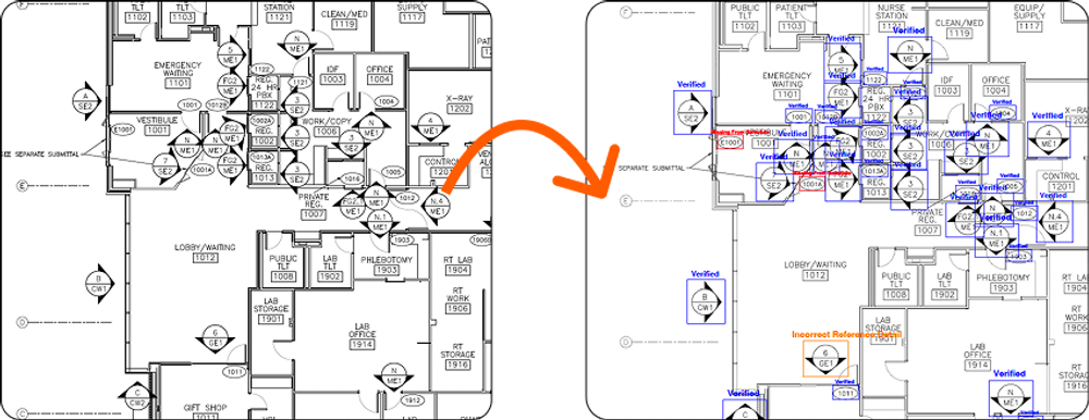 A standard bid set contains hundreds of callouts pointing to sections, elevations, and enlarged plans. When a target detail is missing, construction grinds to a halt—or worse, site teams are forced to guess what to build. MarkedUp traces every single reference instantly, ensuring no dead-end callouts or broken links ever trigger costly rework in the field.